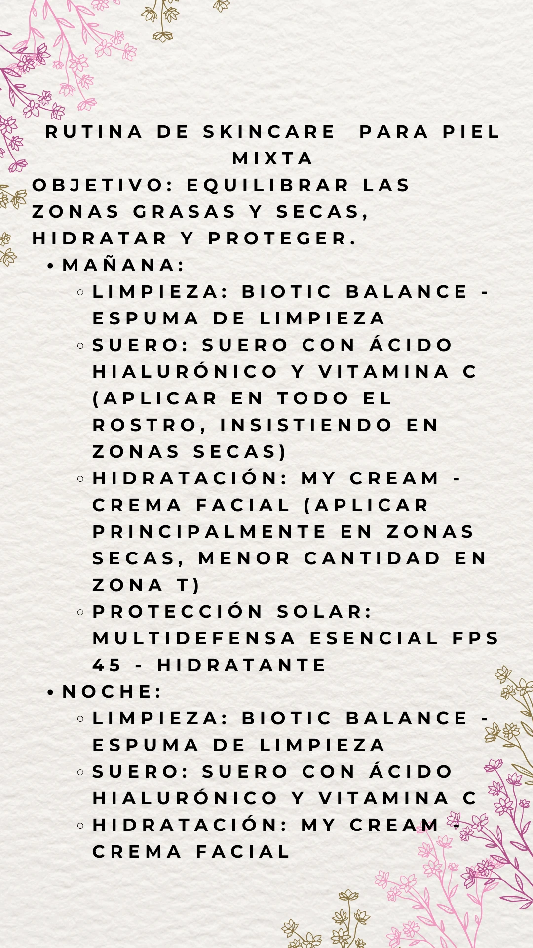 Rutina básica de limpieza facial adaptada a cada tipo de piel. Es fundamental recordar que cada piel es única, y estas son sugerencias generales. Si tienes alguna condición específica o dudas, lo ideal es una consulta personalizada.